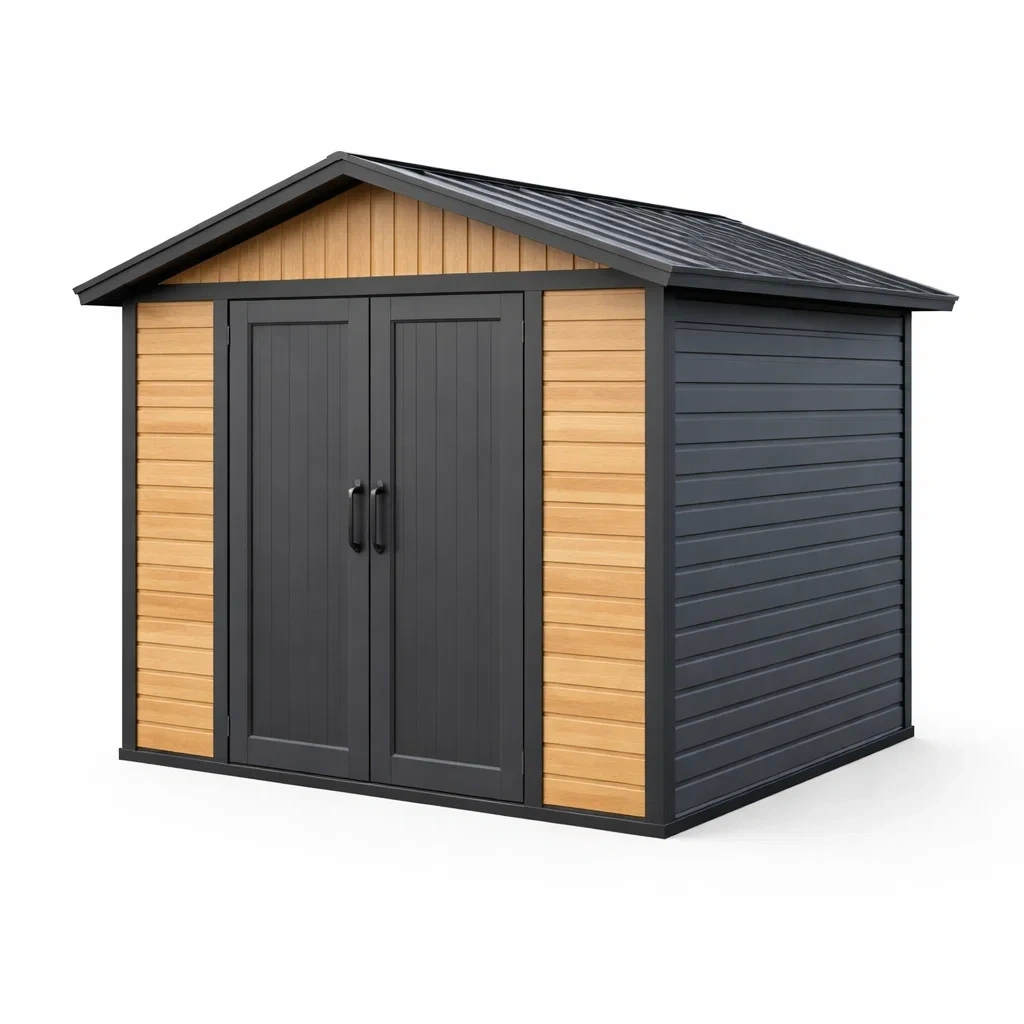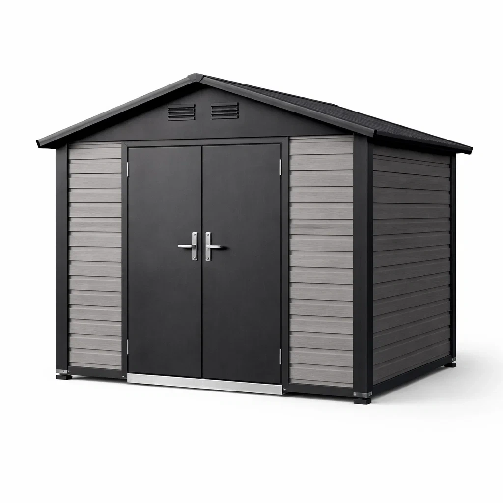 Abri de jardin résine composite double porte marron et gris foncé 255 x 205 x 176 cm