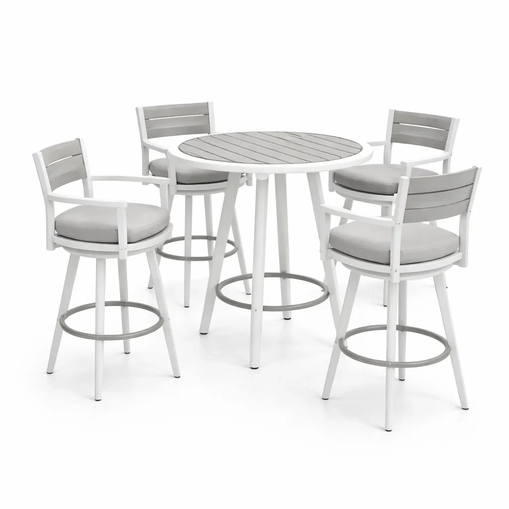 Ensemble de bar extérieur aluminium et synthétique gris avec table ronde et 4 chaises